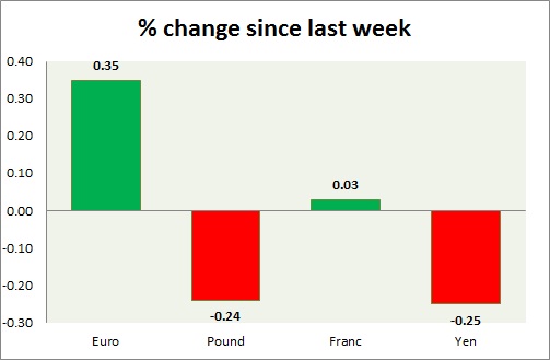 Strength meter (since last week) – Euro +0.35%, Franc +0.03%, Yen -0.25%, GBP -0.24%