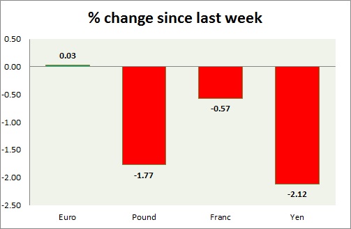 Strength meter (since last week) – Euro +0.03%, Franc -0.57%, Yen -2.12%, GBP -1.77%