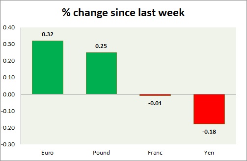 Strength meter (since last week) – Euro +0.32%, Franc -0.01%, Yen -0.18%, GBP +0.25%