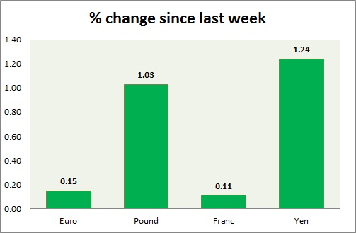 Strength meter (since last week) – Euro +0.15%, Franc +0.11%, Yen +1.24%, GBP +1.03%