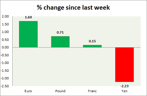 Strength meter (since last week) – Euro +1.69%, Franc +0.15%, Yen -2.23%, GBP +0.71%