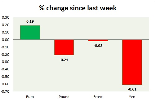 Strength meter (since last week) – Euro +0.19%, Franc -0.02%, Yen -0.61%, GBP -0.21%