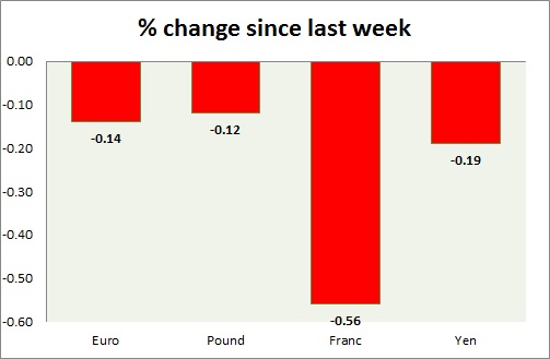 Strength meter (since last week) – Euro -0.14%, Franc -0.56%, Yen -0.19%, GBP -0.12%