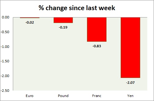 Strength meter (since last week) – Euro -0.02%, Franc -0.83%, Yen -2.07%, GBP -0.19%
