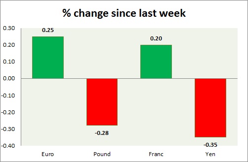 Strength meter (since last week) – Euro +0.25%, Franc +0.20%, Yen -0.35%, GBP -0.28%