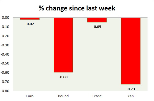Strength meter (since last week) – Euro -0.02%, Franc -0.05%, Yen -0.73%, GBP -0.60%