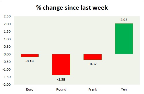 Strength meter (since last week) - Euro -0.18%, Franc -0.37%, Yen +2.02%, GBP -1.34%
