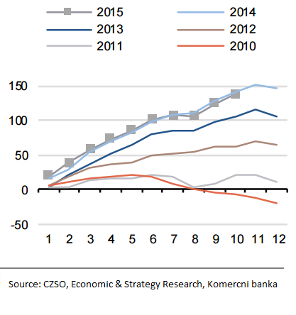 "A good performance by exports should ensure a positive external trade balance; we expect a surplus of CZK13.6bn, inflated by low commodity prices" - Societe Generale