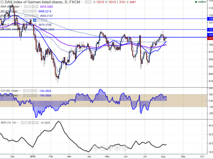- The index recovered after making a low of 10090 on Aug 3rd 2016. It is currently trading around 10259.