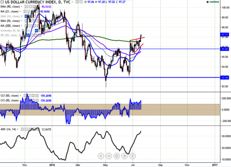 - U.S dollar index has broken major resistance 96.80 and jumped till 97.27 at the time of writing. It is currently trading around 97.27.