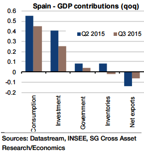 "Looking towards 2016, GDP growth is expected to slow further, at 2% on average in 2016 vs 3% in 2015. Indeed, firstly, given the still-high levels of private sector debt, recent strength in consumption and investment appears unsustainable", says Societe Generale.