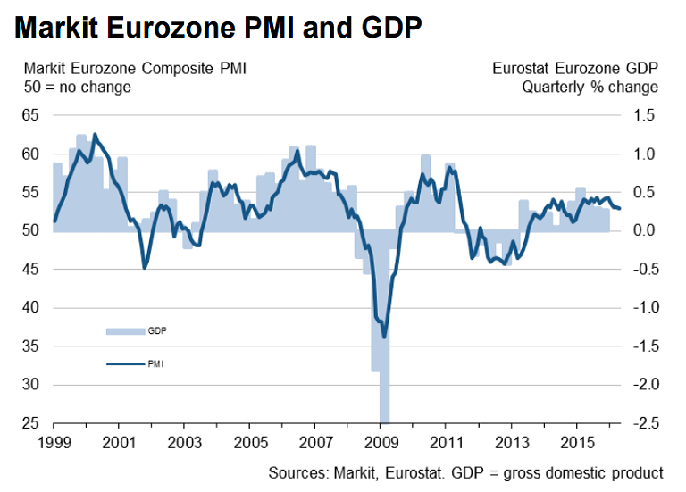“A failure of business expectations to revive following the ECB’s announcement of more aggressive stimulus in March is a major disappointment and suggests that the modest pace of growth is unlikely to accelerate in coming months.” said Chris Williamson, chief economist at Markit in London.
