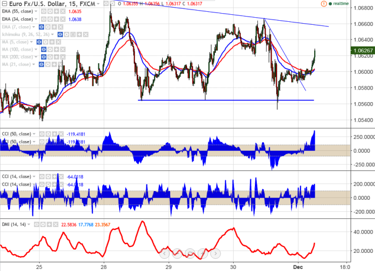 - The pair declined till 1.05527 and recovered sharply from that level. It is currently trading slightly above 1.060 level at 1.06195.