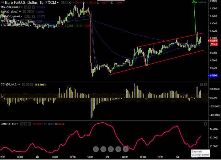EUR/USD has broken trend line resistance around 1.1010 (trend line joining 1.0975 and 1.09846) and break above confirms intraday bullishness, a jump till 1.1095/1.1125 is possible .