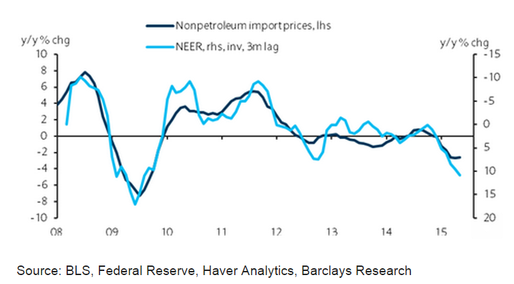"Overall, this report is consistent with our view that downward pressures on imported core inflation from the lagged effects of a stronger dollar will begin to wane in the third quarter, further reducing headwinds for domestic core prices. The stage is now set for a gradual near-term rebound in domestic inflation that should support confidence among FOMC members that inflation will indeed rise toward their 2% target over the medium term." said Barclays in a report