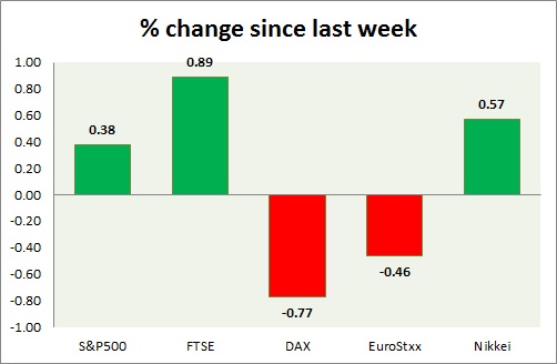Equities are all mixed in today's trading. Kindly note all instruments mentioned here are CFDs, whose values might differ from cash or future traded. Performance this week at a glance in chart & table