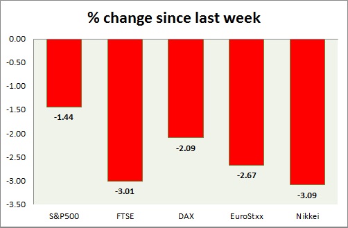Equities are all mixed in today's trading. Kindly note all instruments mentioned here are CFDs, whose values might differ from cash or future traded. Performance this week at a glance in chart & table -