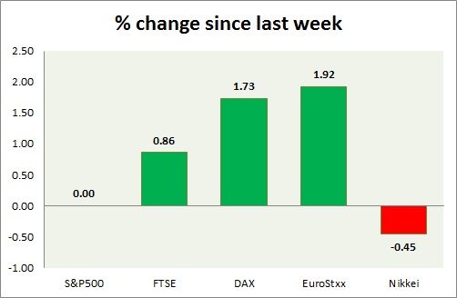 Equities are all mixed in today's trading. Kindly note all instruments mentioned here are CFDs, whose values might differ from cash or future traded. Performance this week at a glance in chart & table -