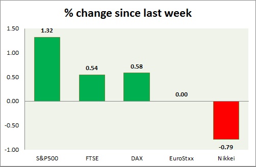 Equities are all mixed in today’s trading. Kindly note all instruments mentioned here are CFDs, whose values might differ from cash or future traded. Performance this week at a glance in chart & table -