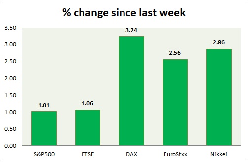 Equities are all mixed in today’s trading. Kindly note all instruments mentioned here are CFDs, whose values might differ from cash or future traded. Performance this week at a glance in chart & table -