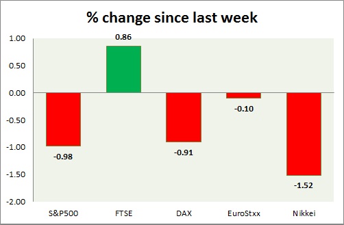 Equities are all mixed today. Performance this week at a glance in chart & table -