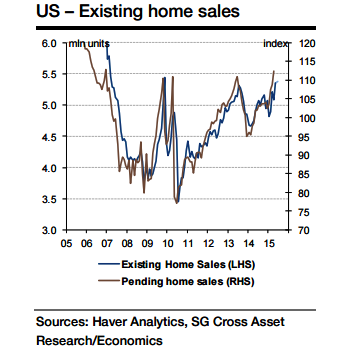 "Resales are also expected to climb further by a modest 0.6% m/m to 5.38 mln units", says Societe Generale.