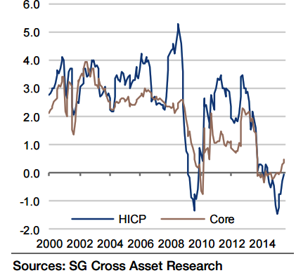 "Looking ahead, Spanish HICP inflation should remain in negative territory until the end of the summer, averaging -0.7% for 2015 and 0.6% in 2016. The core metric should be 0.2% in 2015 before rising to 0.9% in 2016", added Societe Generale.