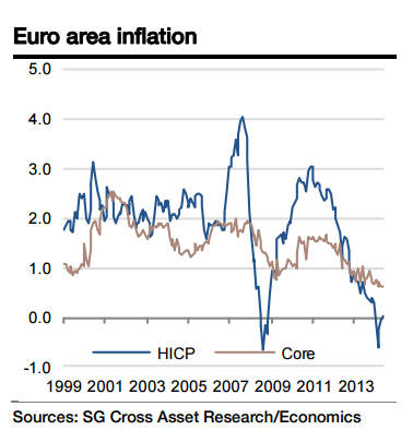 - We expect euro area HICP inflation to average 0.4% in 2015 and 1.5% in 2016, while the core metric should remain stable at 0.7% in 2015 and 1.1% in 2016.