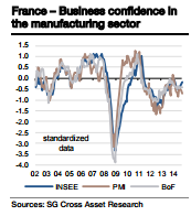 Also worth noticing, the PMI business surveys show that the combination of higher input price inflation and lower output price inflation are begin to put a strain on profit margins, which could provide a headwind to business confidence.