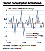 In France, household consumption boosted by a combination of lower oil prices and low inflation, was the main growth driver in Q1. Consumption might be starting to ease, and will continue to ease over the coming months, on the back of increasing oil prices and recovering inflation.