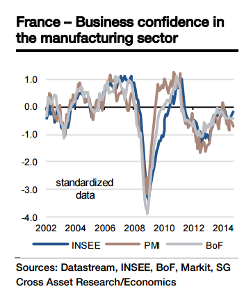 "We expect continued improvement, particularly in the manufacturing sector, as corporate spending and export growth should start to respond to low oil prices and a weak euro," says Societe Generale.