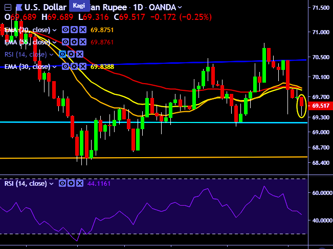 - Key resistances are seen at 69.85, 70.20, 70.52, 70.85, 70.97, 71.23 and 71.51 marks respectively.