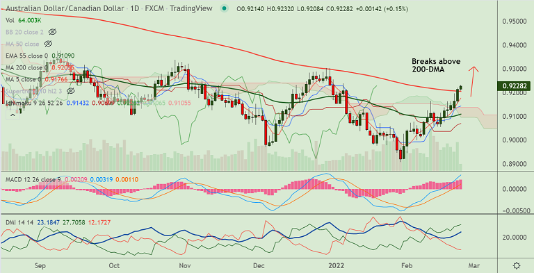 - Price action has broken above 200-DMA