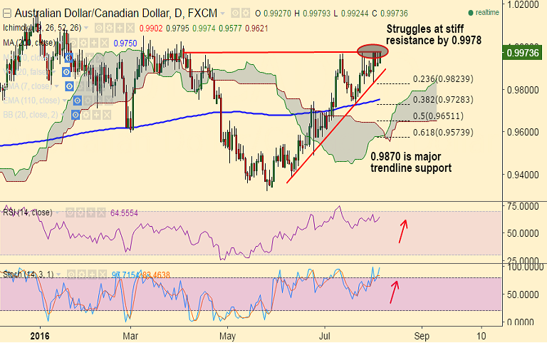 - AUD/CAD once again halts upside at 0.9979 which is stiff resistance level.
