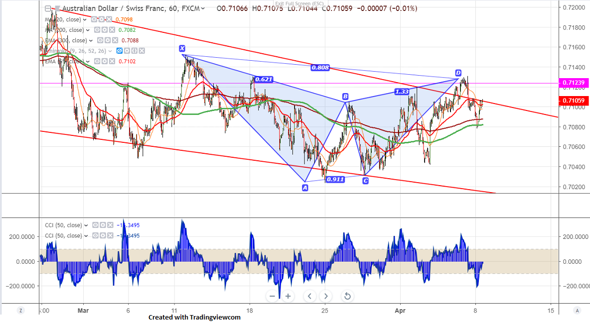As per our analysis AUDCHF was trading lower on Friday and lost nearly 50 pips from the high of 0.71306.It has declined slightly below 200- H MA and shown a minor recovery.It is currently trading around 0.71063.