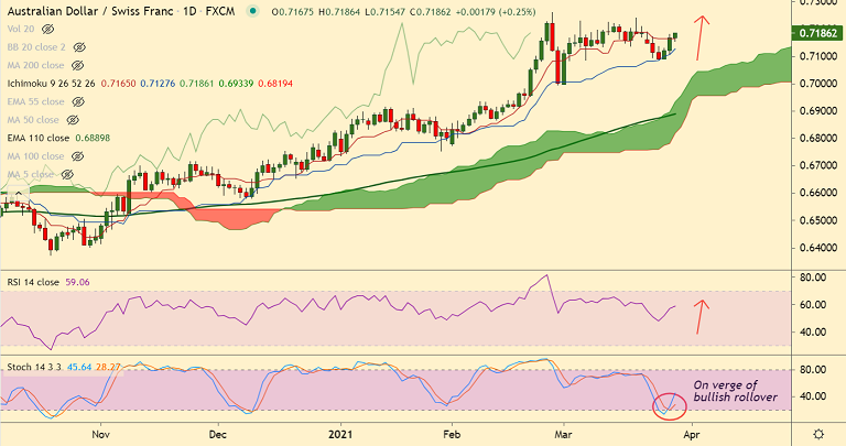 AUD/CHF was extending upside for the 3rd straight session, scope for further gains.