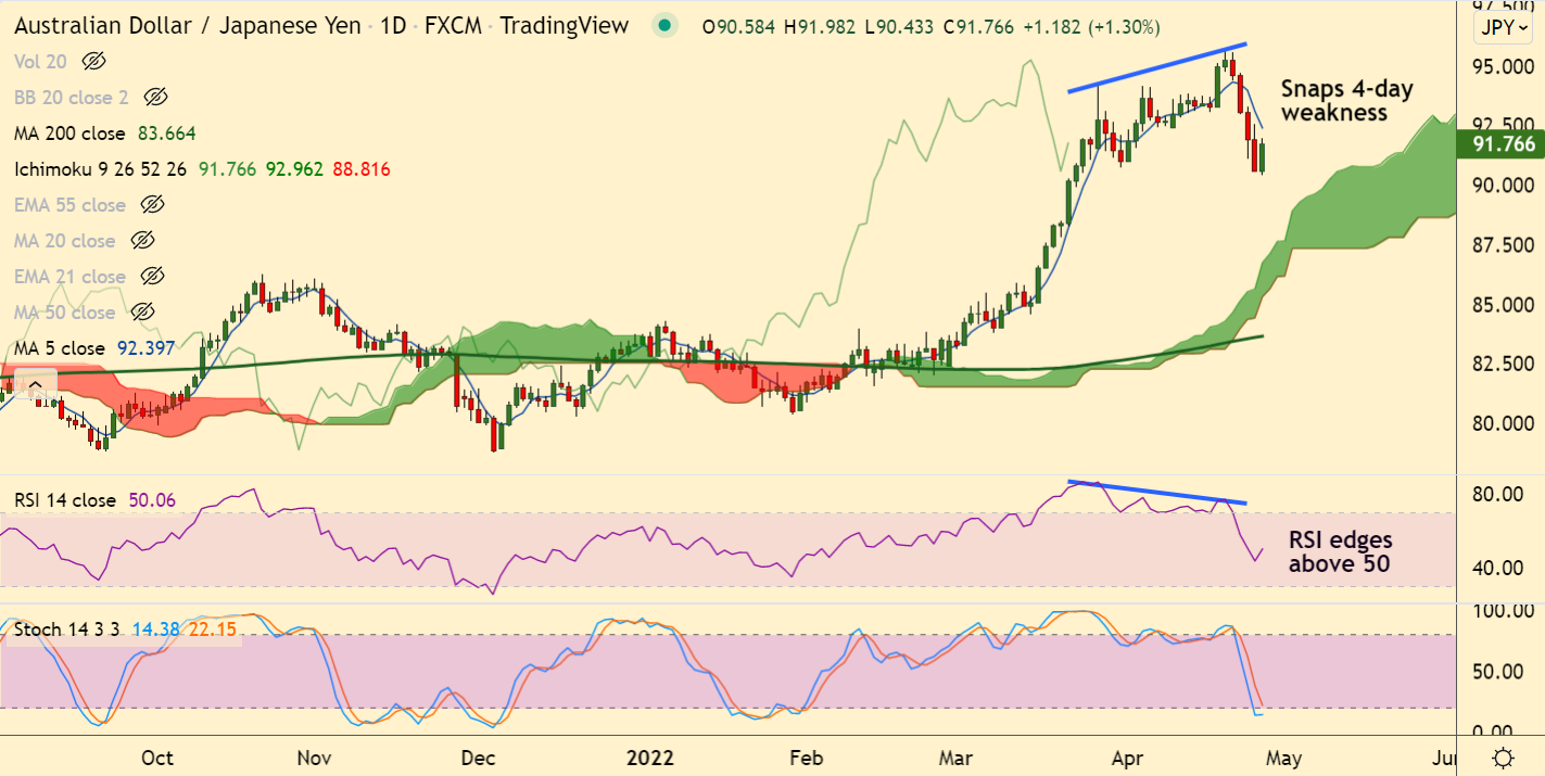 20-DMA is strong resistance at 92.98, decisive break above will see upside resumption in the pair.