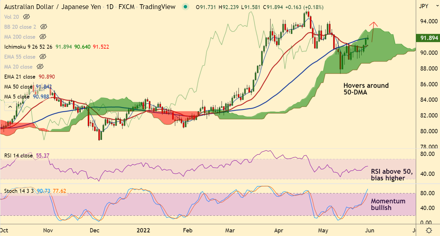 Reserve Bank of Australia's hawkish signal that a bigger interest rate hike is still possible in June keeps bias bullish.