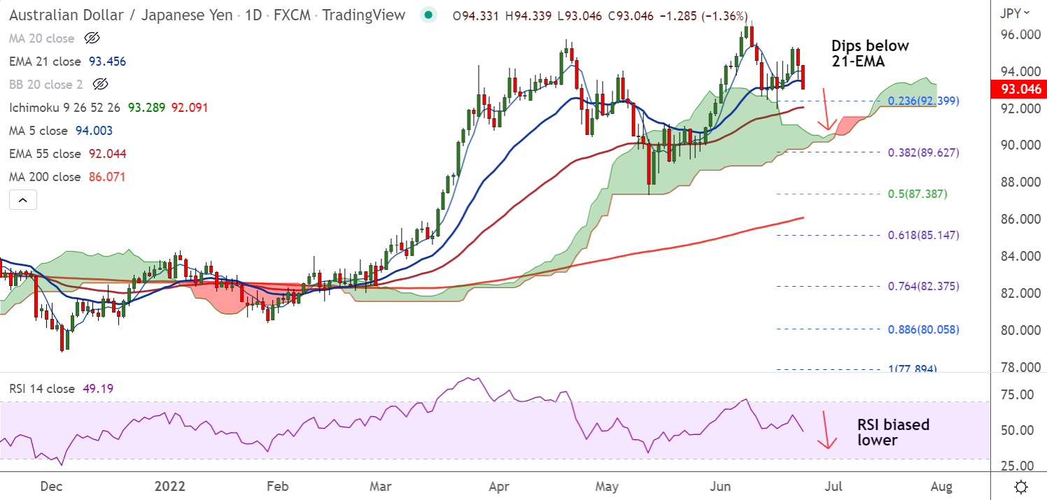 AUD/JPY on track for further downside, scope for test of 23.6% Fib retracement at 92.39.