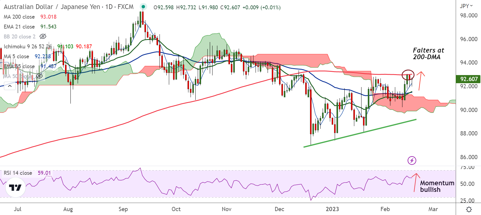 The pair finds stiff resistance at 200-DMA at 93.01, decisive break above required for upside continuation.