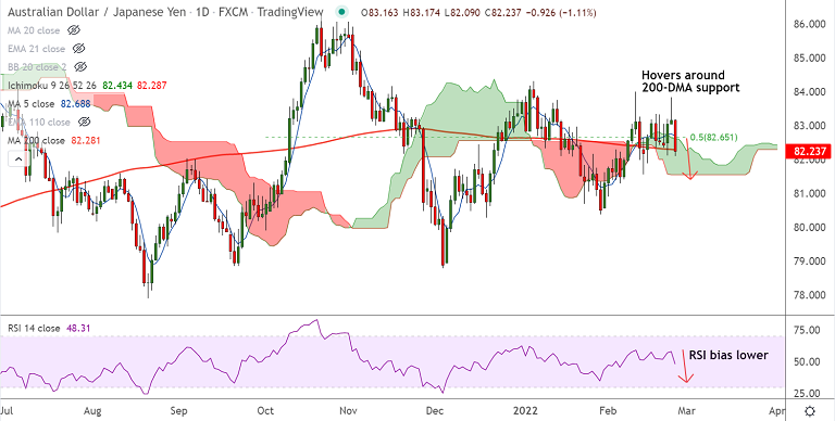 - Price action is holding 200-DMA and 110-EMA support around 82.28