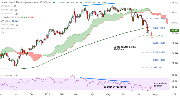 On the flipside, 5-DMA is immediate resistance at 80.83. Bearish invalidation only above 200-DMA.