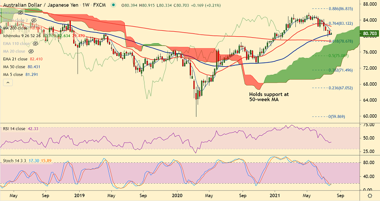 - The pair is holding support at 50-week MA at 80.43, break below to drag the pair lower