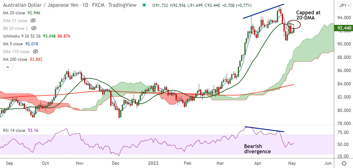 AUD/JPY bulls need a successful break above 200H MA and 20-DMA to see further upside. Scope then for re-test of yearly high at 95.74.