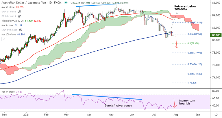 5-DMA is immediate resistance at 81.01. Bearish invalidation only above 200-DMA.