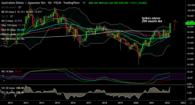 The pair has broken sideways trend on the monthly charts and has spiked past 200-month MA.