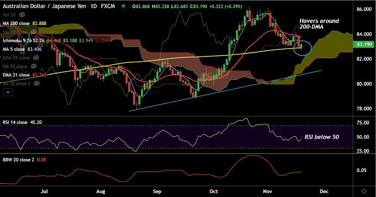 Resistance levels - 83.43 (5-DMA), 83.76 (21-EMA), 84.32 (20-DMA)