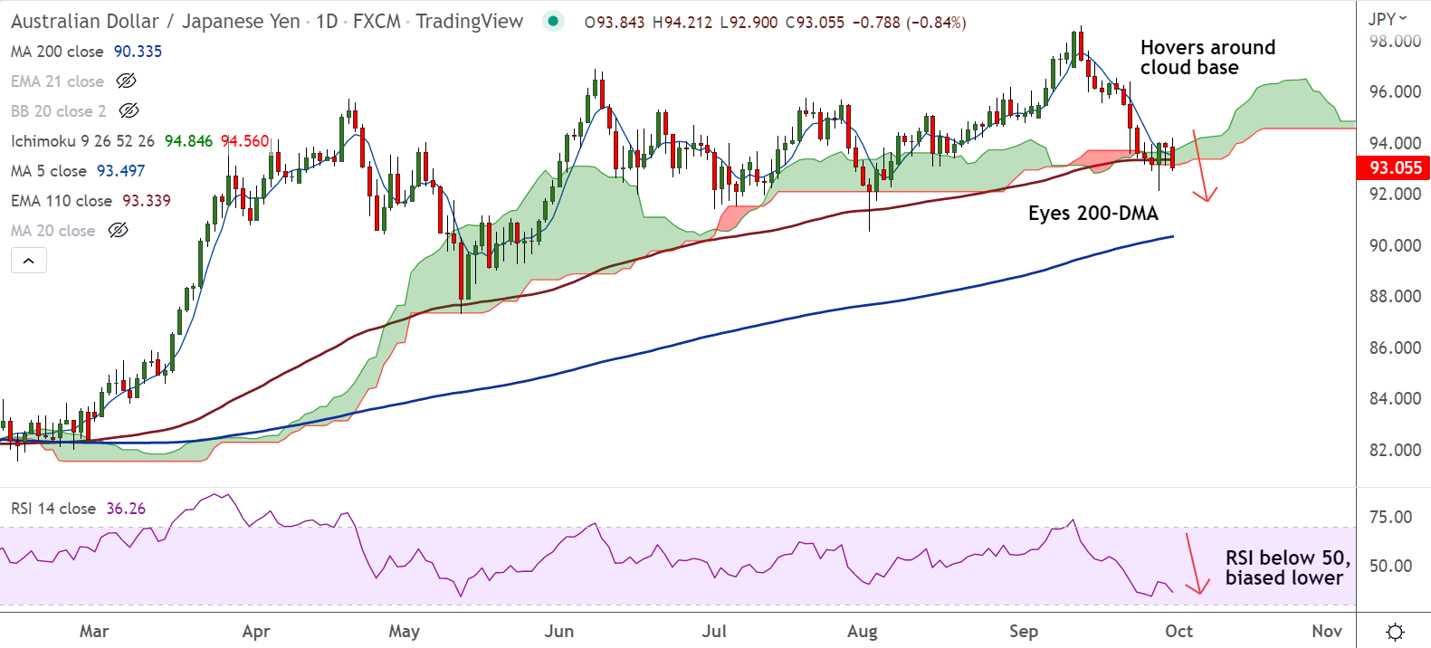Summary: AUD/JPY trades with a bearish bias. The pair is poised to extend weakness. Scope for test of 200-DMA at 90.33.
