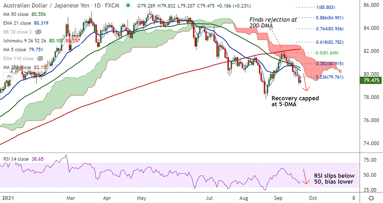 - AUD/JPY pauses 5-day bearish streak, outlook remains bearish