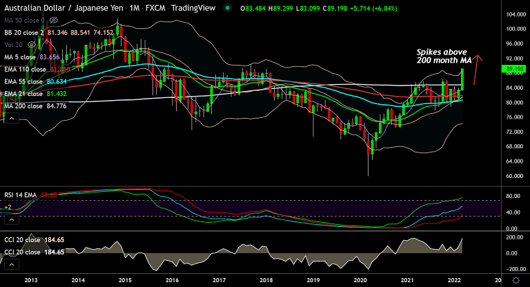 AUD/JPY trades with a strong bullish bias. The pair is on track to break above 2017 high at 90.30.